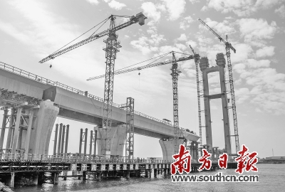 近年來,交通基礎(chǔ)設(shè)施建設(shè)是廣東“補(bǔ)短板”工作的重要一環(huán)。圖為正在建設(shè)中的深茂鐵路潭江特大橋。全媒體記者 吳偉洪 攝