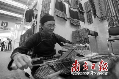 在文博會8號館非物質文化遺產館,參展商正在展示黎族傳統(tǒng)紡染織繡技藝。南方日報記者 朱洪波 攝
