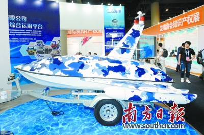 2017創(chuàng)交會現(xiàn)場展示的無人駕駛船。南方日報記者 肖雄攝
