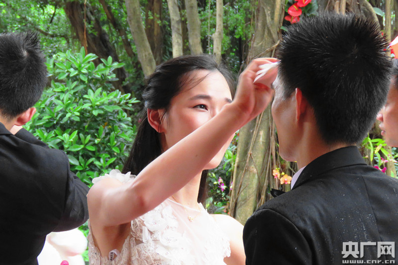 央廣網(wǎng)廣州7月8日消息(記者 王雪薇)草坪婚禮、海邊婚禮見得多了,而有機(jī)會在空中許下愛的誓言則并不多見。7月8日中午,全球最大的空中集體婚禮在廣州長隆野生動物世界舉行,來自全國的227對新人乘坐227個空中纜車,留下了足以銘記一生的時刻。