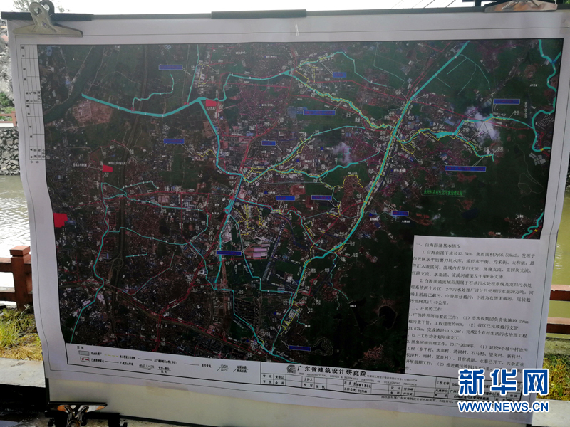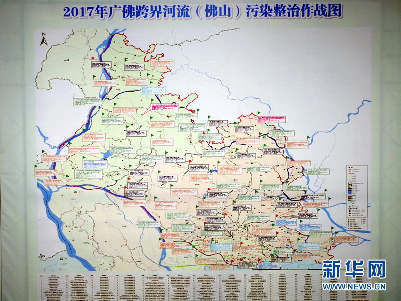 佛山在河邊掛出“2017年廣佛跨界河流(佛山)污染整治作戰(zhàn)圖”。新華網記者 盧鑒 攝