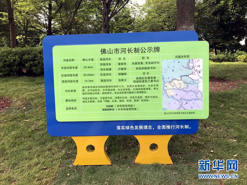 佛山水道的“河長制公示牌”。新華網記者 盧鑒 攝