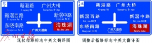 據(jù)廣州日報報道,昨日,廣州市住建委發(fā)布《廣州市重點區(qū)域道路交通標(biāo)識系統(tǒng)(完善)設(shè)計指引 》(以下簡稱《指引》),廣州市道路交通系統(tǒng)對道路交通標(biāo)識進(jìn)行了統(tǒng)一規(guī)格調(diào)整,并統(tǒng)一了路名的翻譯格式。