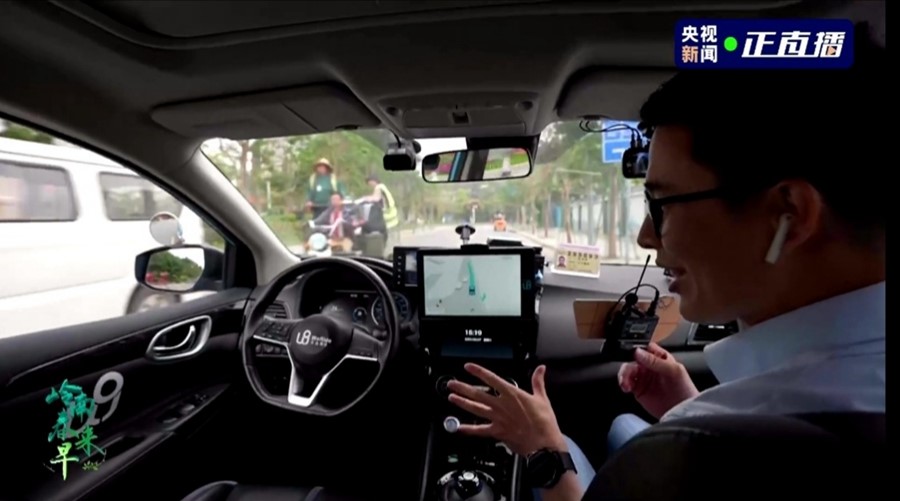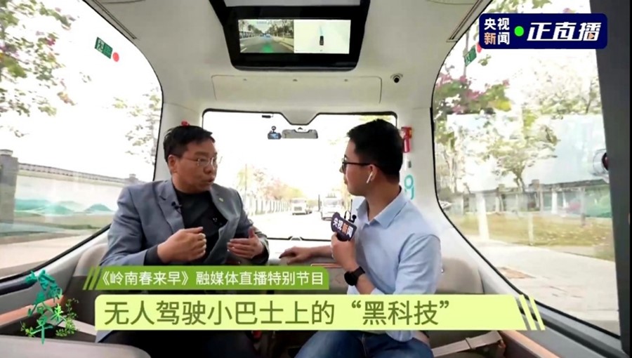 直播中,總臺記者走進(jìn)同時(shí)落地?zé)o人駕駛汽車和無人駕駛巴士的廣州生物島,使用手機(jī)軟件叫車,一路分享新鮮體驗(yàn)感受,并與自動駕駛領(lǐng)軍企業(yè)文遠(yuǎn)知行首席運(yùn)營官張力暢談無人駕駛技術(shù)里的“黑科技”。
