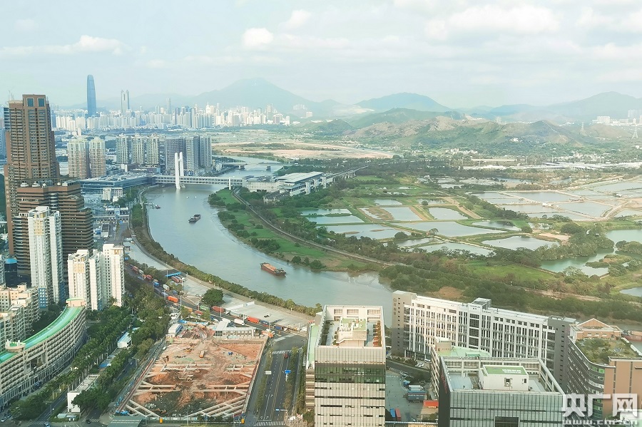 從深港科技創(chuàng)新合作區(qū)高處俯瞰深圳河。(央廣網(wǎng)記者 夏燕 攝)