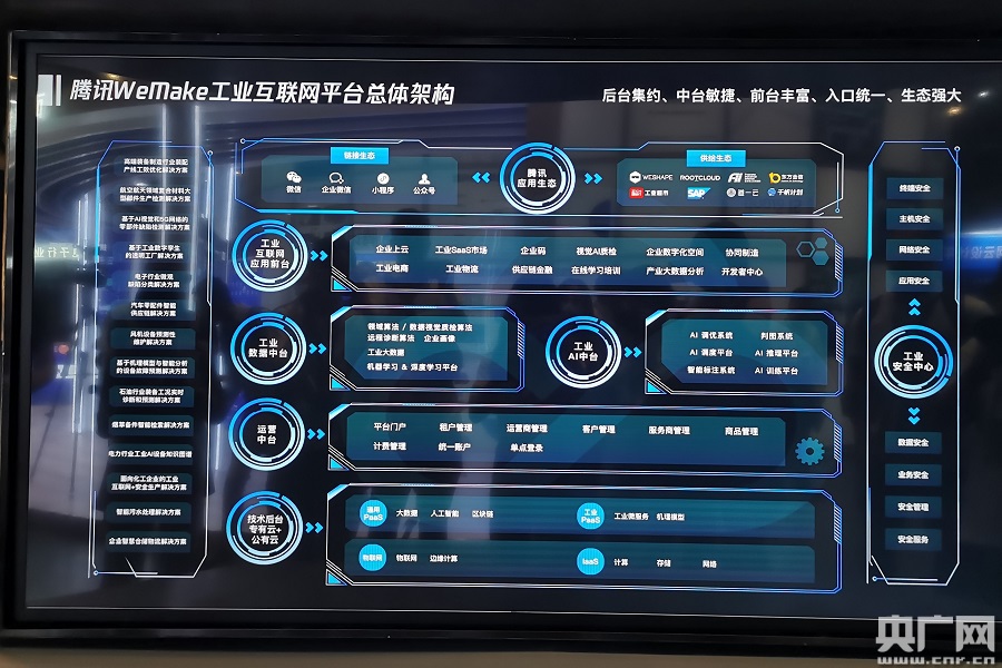 騰訊WeMake工業(yè)互聯(lián)網(wǎng)平臺架構(gòu)。(央廣網(wǎng)記者 夏燕 攝)