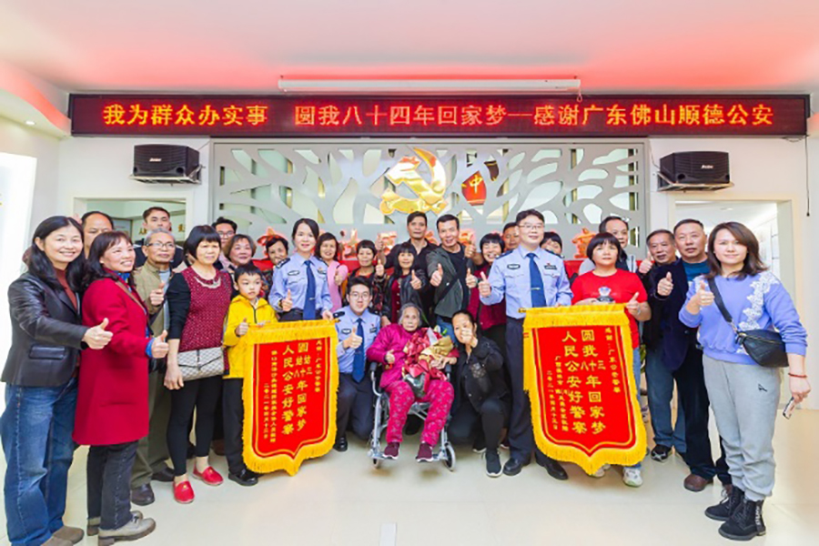 此后,包括馬宏聲在內(nèi)的佛山順德公安民警一直關(guān)注這個(gè)特殊的個(gè)案,并通過志愿者與馮鳳英和家人保持聯(lián)系,與社會(huì)多方協(xié)作,設(shè)法為這位八旬老人尋親圓夢(mèng)。