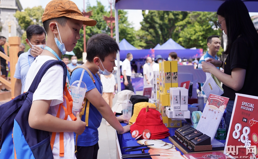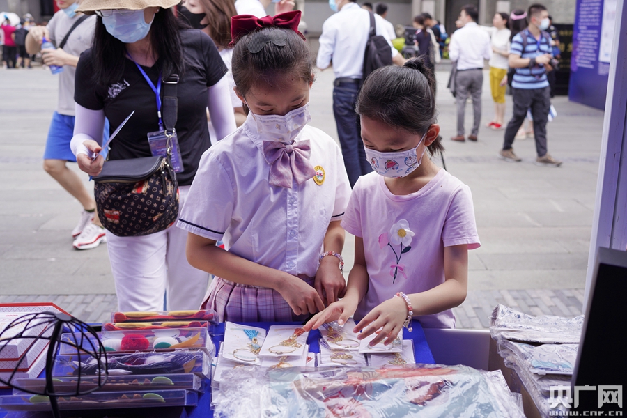 小朋友在挑選心儀的文創(chuàng)產(chǎn)品。(央廣網(wǎng)記者 官文清攝)