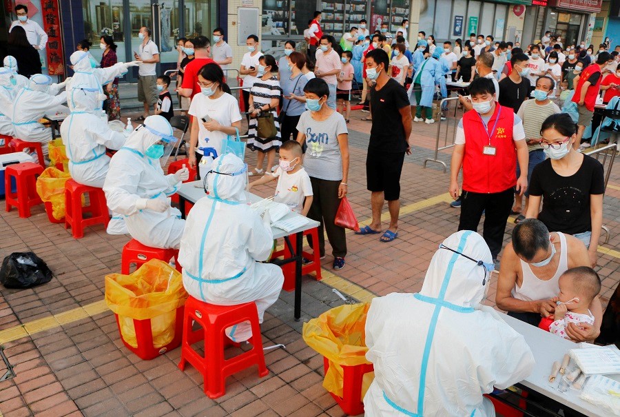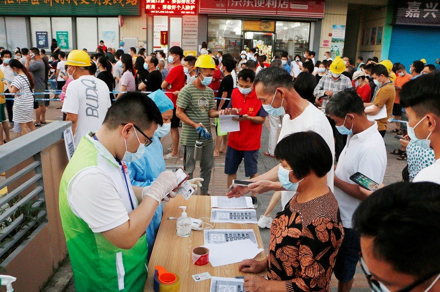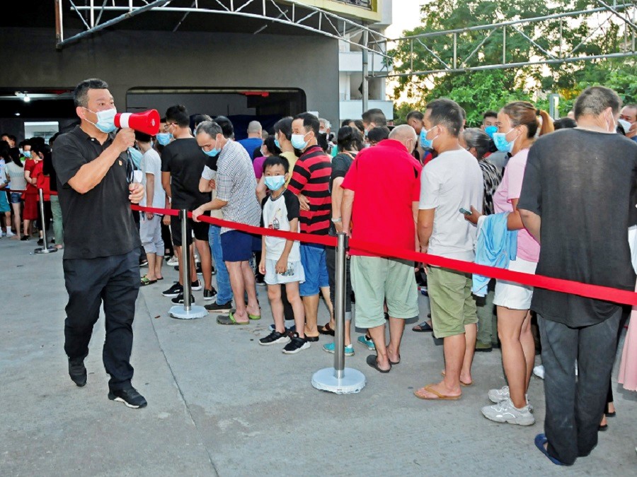 盡管人數(shù)多、任務(wù)重,花都全區(qū)核酸檢測工作有序進(jìn)行。工作安排合理,市民十分配合。