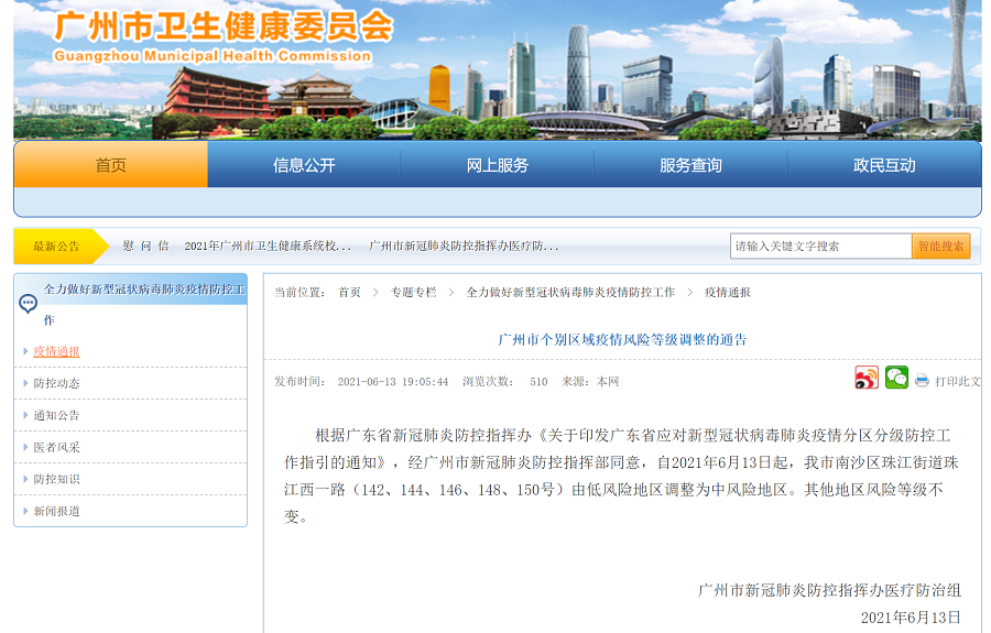 據(jù)廣州市衛(wèi)生健康委官網(wǎng)6月14日早上通報(bào):6月11日晚,廣州醫(yī)科大學(xué)附屬市八醫(yī)院在對(duì)醫(yī)務(wù)人員進(jìn)行的例行新冠病毒核酸檢測(cè)中,發(fā)現(xiàn)兩名陽(yáng)性感染者。接報(bào)后,相關(guān)部門及時(shí)進(jìn)行處置。有關(guān)情況通報(bào)如下: