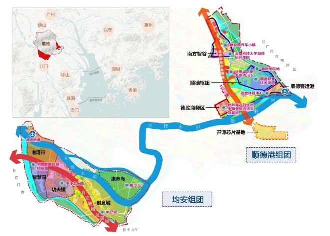 據(jù)了解,合作區(qū)規(guī)劃面積約100平方公里,包括順德港和均安兩個組團(tuán),將依托順德客運(yùn)港、順德新港貨運(yùn)港強(qiáng)化與廣深港澳等中心城市的交通聯(lián)系,帶動人流、物流、資金流等要素順暢流動和集聚,形成“雙港領(lǐng)航,雙團(tuán)聯(lián)動”的空間格局。