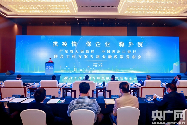 央廣網(wǎng)廣州11月26日消息(記者陳越 通訊員吳曉菲)11月26日,“抗疫情 保企業(yè) 穩(wěn)外貿(mào)”——廣東省人民政府 中國進出口銀行聯(lián)合工作方案專項金融政策發(fā)布會(以下簡稱“發(fā)布會”)在廣州舉行。廣東省政府領(lǐng)導(dǎo)、中國進出口銀行行長吳富林出席發(fā)布會并致辭。此次會議由廣東省商務(wù)廳、中國進出口銀行廣東省分行聯(lián)合主辦,廣東省發(fā)改委、財政廳、工業(yè)和信息化廳、商務(wù)廳、國資委、地方金融監(jiān)管局、人民銀行廣州分行、中國出口信用保險公司廣東分公司、廣東各地市商務(wù)局和廣東80余家重點企業(yè)參加發(fā)布會。