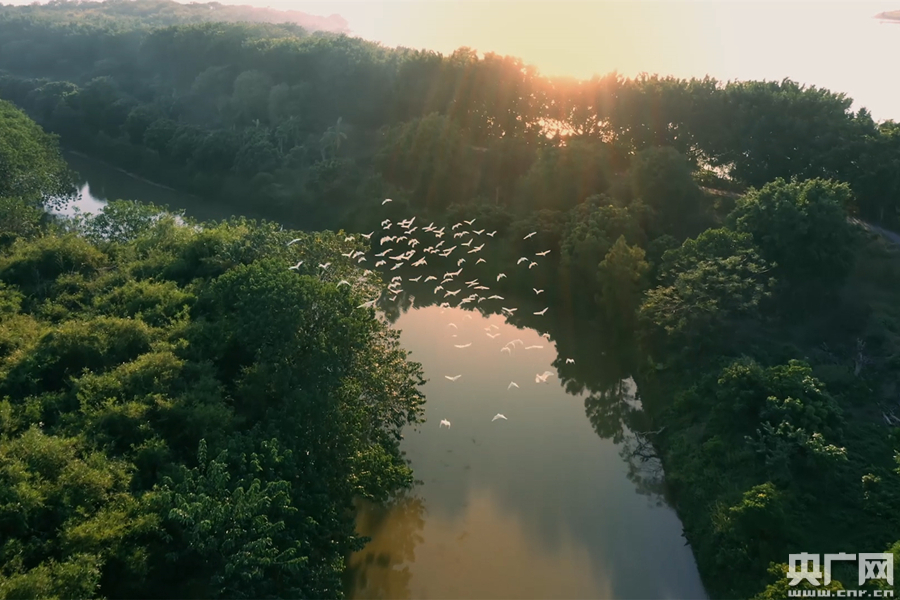 勒流鯉魚(yú)沙島,近年來(lái)生態(tài)環(huán)境持續(xù)改善,昔日荒島如今變成生態(tài)綠島,棲息著成千上萬(wàn)的鷺鳥(niǎo)。(央廣網(wǎng)發(fā) 通訊員供圖)