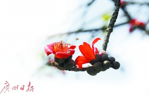 木棉花悄然開放,勤勞的小蜜蜂在花朵里采蜜。廣州日報全媒體記者邱偉榮攝