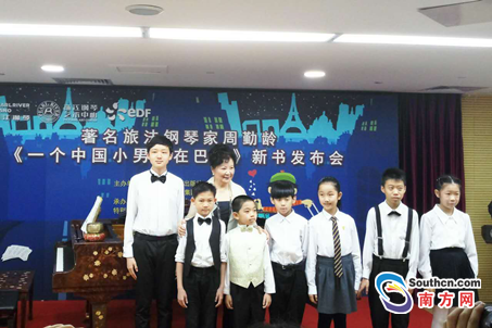 南方網(wǎng)報道,音樂傳遞著美好祝福,更能成為傳承精神的載體。9日上午,著名法籍華裔鋼琴家、音樂教育家、聯(lián)合國教科文組織莫扎特勛章獲得者周勤齡的新書《一個中國小男孩在巴黎》發(fā)布會(廣州站)在廣州珠江鋼琴藝術(shù)中心舉行。在現(xiàn)場,周勤齡與自己的4位旅法歌唱家學(xué)生,7名僅有10多歲的廣州小琴童一起,為觀眾獻上了一場簡單卻具有特殊意義的音樂會。