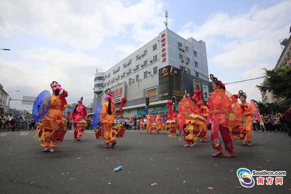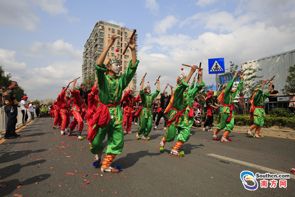 南方網(wǎng)消息:鑼鼓喧天的巡游隊(duì)伍綿延一公里長(zhǎng),走街串巷了近三個(gè)小時(shí)。
