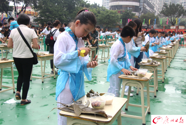 據(jù)廣州日?qǐng)?bào)報(bào)道,合興苑小學(xué)千人包粽迎端午 2017年5月23日上午,合興苑小學(xué)舉辦了一場(chǎng)別開(kāi)生面的千人包棕迎端午活動(dòng),邀請(qǐng)家長(zhǎng)與學(xué)生在動(dòng)手實(shí)踐中感受民俗文化,在親子互動(dòng)中體驗(yàn)過(guò)節(jié)的樂(lè)趣,場(chǎng)面極為壯觀。