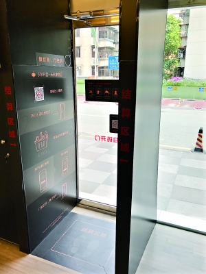 該店員告訴記者,超市是近兩三天才剛開始試業(yè)運(yùn)營。顧客掃二維碼進(jìn)入后,只需拿著購買的商品,在設(shè)有掃描裝置的門口站幾秒,系統(tǒng)便能自動(dòng)結(jié)算。這時(shí),顧客點(diǎn)一下手機(jī)界面上的“出門·結(jié)算”,通過手機(jī)完成支付,就能通過自動(dòng)打開的大門離開超市了。