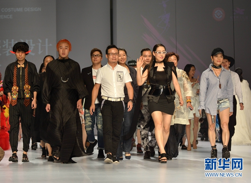 8月23日,設(shè)計(jì)師在東莞非遺原創(chuàng)服裝設(shè)計(jì)項(xiàng)目作品展示之后集體亮相。新華網(wǎng)發(fā)(許建梅攝)