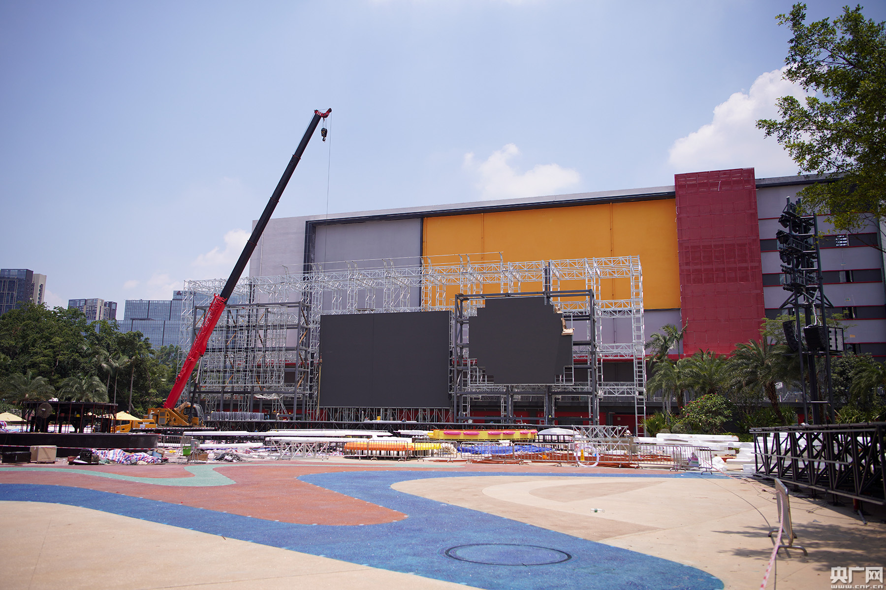 進(jìn)入建造收尾階段的超級(jí)演義廣場(chǎng)。(央廣網(wǎng)記者 官文清 攝)