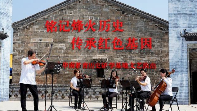 廣州交響樂團(tuán)首席、副團(tuán)長張毅與“飛·粵”四重奏在現(xiàn)場演繹獨奏與弦樂四重奏《第一小提琴協(xié)奏曲》片段。該首曲目由著名音樂家馬思聰1943年作于粵北。
