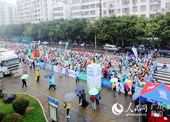 近1.5萬名海內(nèi)外選手迎著風雨歡跑。
