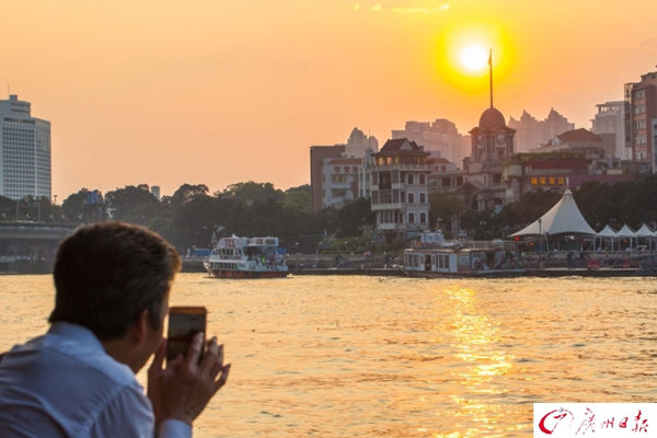 據(jù)大洋網(wǎng)報(bào)道,2017年4月17日,廣州市艷陽(yáng)高照,最高氣溫高達(dá)33℃,一日入夏。濱江路,穿著短袖短褲的街坊們?cè)邳S昏的斜陽(yáng)下感受初夏的滋味。廣報(bào)全媒體記者陳憂子攝