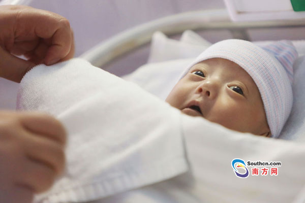19日上午,在市婦幼保健醫(yī)院新生兒科病房?jī)?nèi),糾正年齡2個(gè)月的“早早”在“臨時(shí)媽媽”熊小云的懷里非常安靜,雖然臉部還有少許黃疸,但瞪著圓圓的眼睛顯得非常有精氣神,兩眼也不停地四處張望,對(duì)外界充滿了好奇。