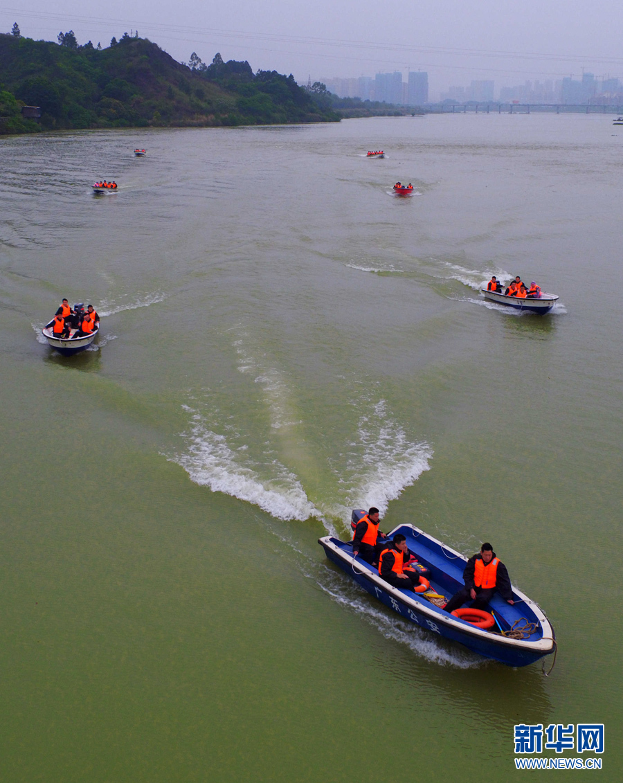 4月中旬,廣東省公安廳在河源舉辦了全省公安特警隊實戰(zhàn)應用沖鋒舟培訓班。圖為,沖鋒舟救援訓練。新華網發(fā)