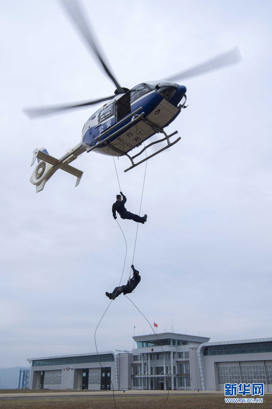 年初,來自廣州市特警支隊的18名學員參加廣東省公安廳舉辦的第一期直升機索降技能合成訓練,共計飛行6小時多、80架次。圖為,直升機索降技能合成訓練。新華網發(fā)