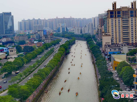 南方網(wǎng)訊   5月1日,2017年順德區(qū)歡樂(lè)龍舟文化節(jié)暨“樂(lè)從供銷集團(tuán)杯”五人龍舟邀請(qǐng)賽在樂(lè)從英雄河上拉開(kāi)了帷幕,奏響了順德本年度龍舟運(yùn)動(dòng)的序曲。百橈擊碧水、斗舸沖逆波、鼓聲震兩岸,來(lái)自于順德各鎮(zhèn)街的100余支龍舟隊(duì)齊聚樂(lè)從,在英雄河上展開(kāi)了巔峰對(duì)決,兩岸觀者如潮,喝彩陣陣,萬(wàn)眾歡騰。