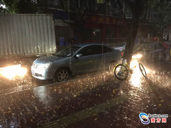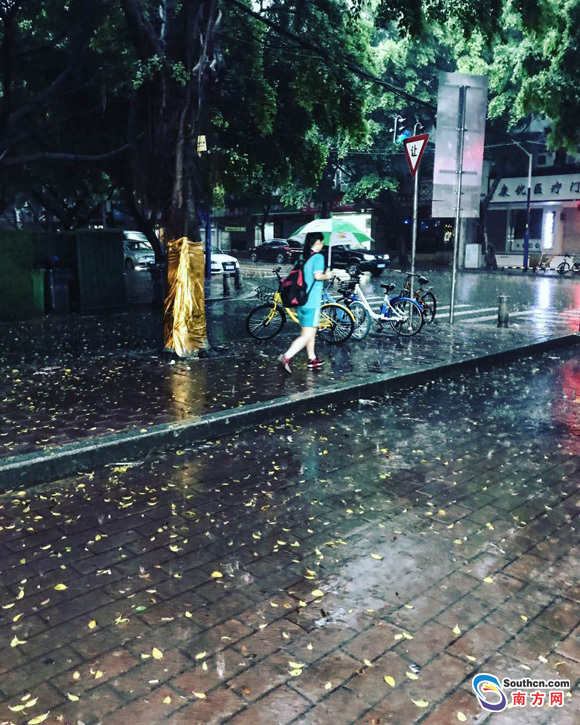 5月4日清晨,廣州開啟暴雨模式,經(jīng)歷一夜暴雨沖刷,路面被黃葉覆蓋,拖鞋短褲成為今晨最佳標(biāo)配。