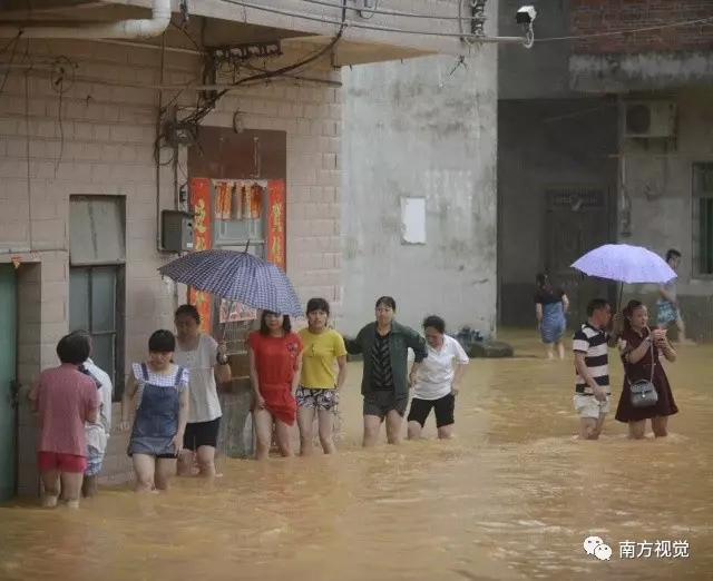 在增城九和村,村民們正從被淹沒(méi)的房子里走出來(lái)。