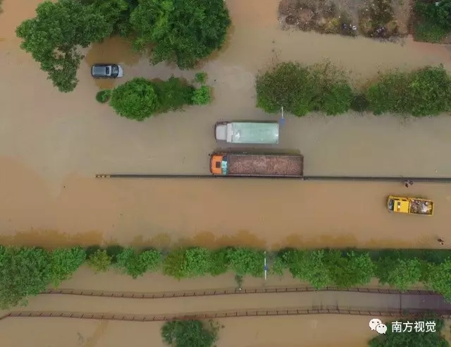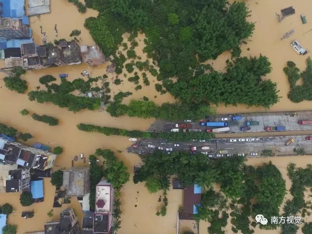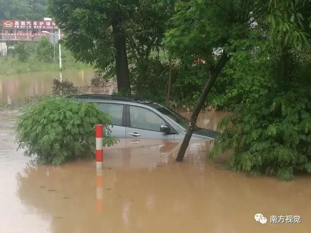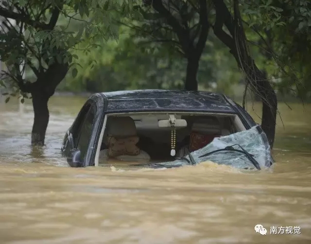 而許多沒(méi)來(lái)得及開(kāi)走的汽車(chē)摩托車(chē)也被淹沒(méi)在水中。