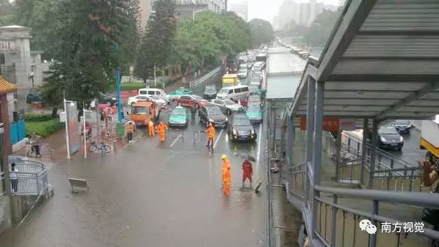 中山大道師大暨大公交車(chē)站出,積水太深,過(guò)往車(chē)輛無(wú)法前行。