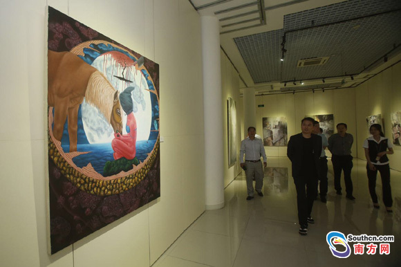 “全國美術(shù)院校畢業(yè)生獲獎作品邀請展”邀請了分別來自中央美術(shù)學(xué)院、中國美術(shù)學(xué)院、魯迅美術(shù)學(xué)院、四川美術(shù)學(xué)院、湖北美術(shù)學(xué)院、廣州美術(shù)學(xué)院天津美術(shù)學(xué)院、西安美術(shù)學(xué)院等全國知名美術(shù)院校等院校的18余位優(yōu)秀藝術(shù)家參展,共展出作品60余幅,以當(dāng)代架上藝術(shù)為主,涵括了國畫、油畫、版畫、綜合材料等類型。