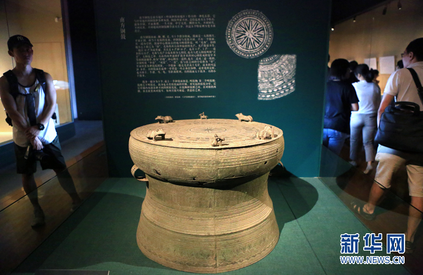 8月31日,為期三個(gè)月的《南北通融——南粵古驛道展覽》在廣東省博物館開展。展覽陳列了與道路、人員和商貿(mào)有關(guān)的300多件/套歷史見證物,展示了南粵地域文化的包容性和多樣性,吸引觀眾通過旅游、徒步、攝影等文化休閑活動(dòng)實(shí)地感受古驛道的魅力。圖為觀眾參觀“南北通融——南粵古驛道展覽”展出的漢銅鼓。新華網(wǎng) 崔凌云攝