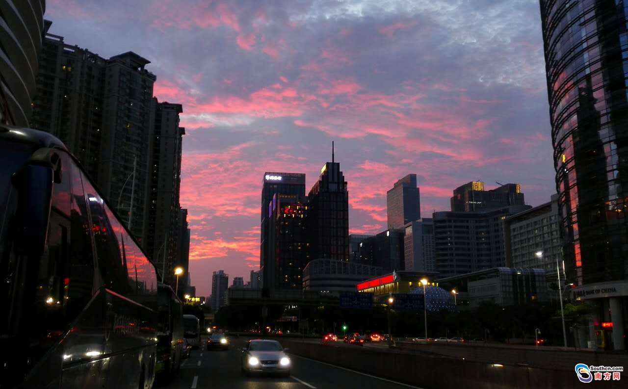 10日傍晚,廣州紅霞漫天,照亮了整座城市。