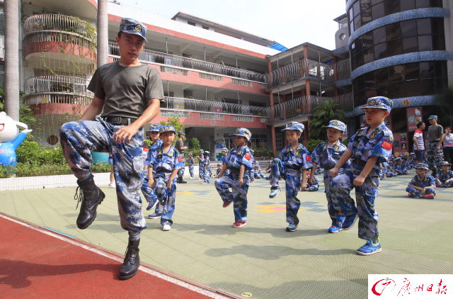 讓幼兒園的小娃娃參加軍訓(xùn),這在廣州尚屬首次。
