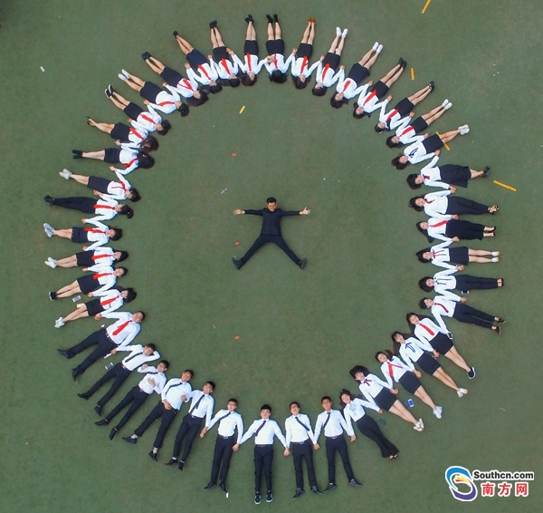 集體大合照結(jié)束后,學(xué)生們分散到校園各個(gè)角落拍照。在經(jīng)世廣場(chǎng),校方提供了巨型“學(xué)生證”等展板供學(xué)生合影。在足球場(chǎng),一些學(xué)生平躺在操場(chǎng)擺出“畢業(yè)了”的造型,換一個(gè)視角定格即將逝去的大學(xué)青春時(shí)光。