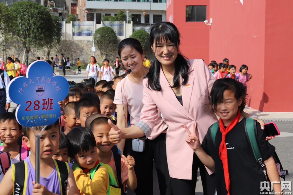 央廣網(wǎng)畢節(jié)9月10日消息(記者張勝強(qiáng))“校長媽媽好!”“校長媽媽再見”……臨近放學(xué),走向校門口的孩子們看見詹雯后顯得十分開心。