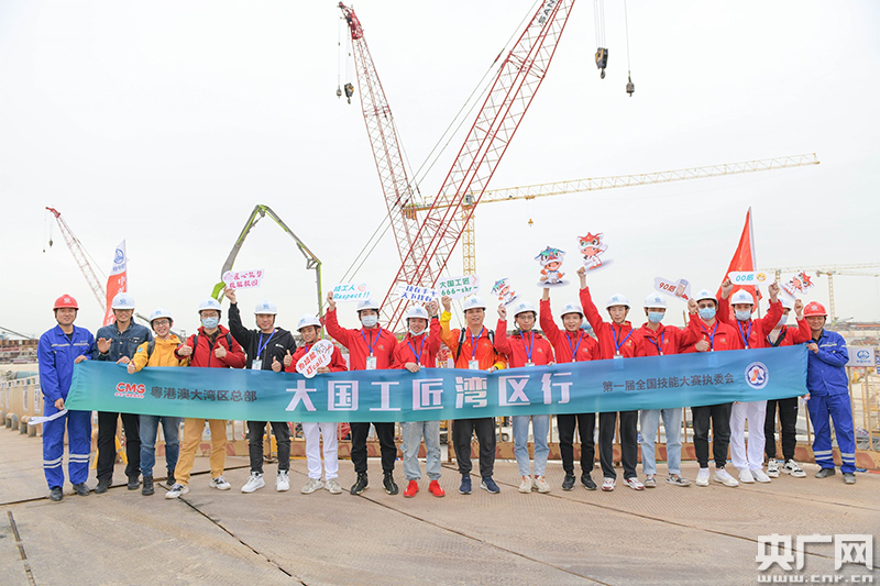 這是由中央廣播電視總臺(tái)粵港澳大灣區(qū)總部和第一屆全國(guó)技能大賽執(zhí)委會(huì)共同主辦的“大國(guó)工匠灣區(qū)行”活動(dòng)之“大國(guó)工匠走進(jìn)超級(jí)工程”的其中一個(gè)場(chǎng)景。在為期三天的活動(dòng)中,來(lái)自電工、混凝土建筑、焊接、機(jī)電一體化等比賽項(xiàng)目的多位“技能國(guó)手”用腳步丈量“超級(jí)工程”,感受大灣區(qū)發(fā)展速度。