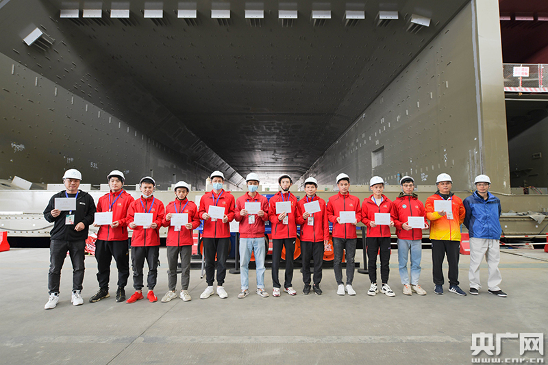 “技能國(guó)手”們收到來(lái)自深中通道的榮譽(yù)offer。(央廣網(wǎng)記者 官文清攝)