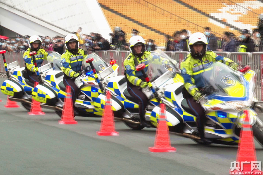 地面警用摩托車演練(廣東總站記者孫冰 攝)