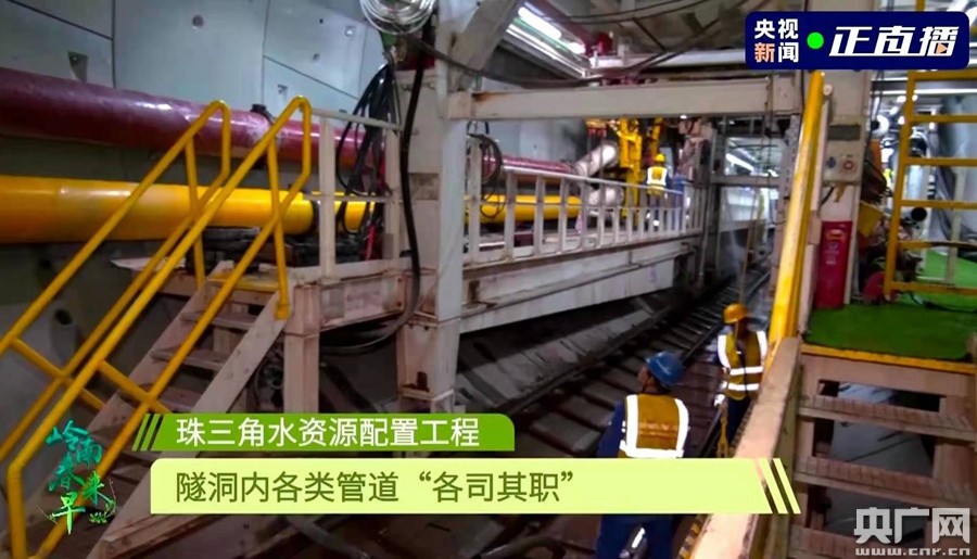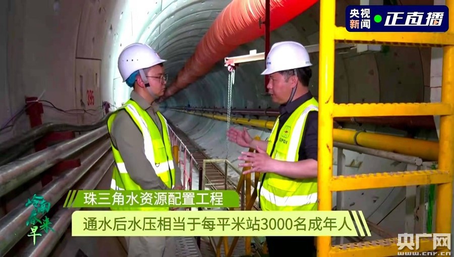在節(jié)目中,總臺記者帶領觀眾去往地下60米,實地探訪了施工難度頂級的珠三角水資源配置。