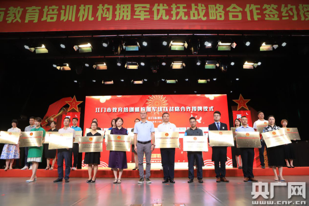 江門市教育培訓(xùn)機構(gòu)擁軍優(yōu)撫戰(zhàn)略合作授牌儀式(央廣網(wǎng)發(fā) 通訊員鐘少蘭供圖)