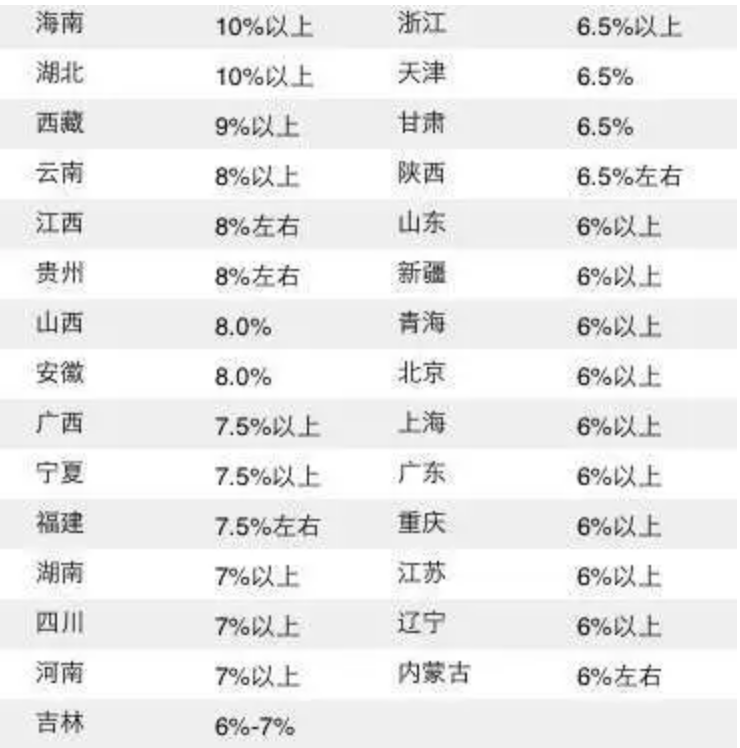 數(shù)據(jù)來源:各地統(tǒng)計(jì)局或政府工作報(bào)告