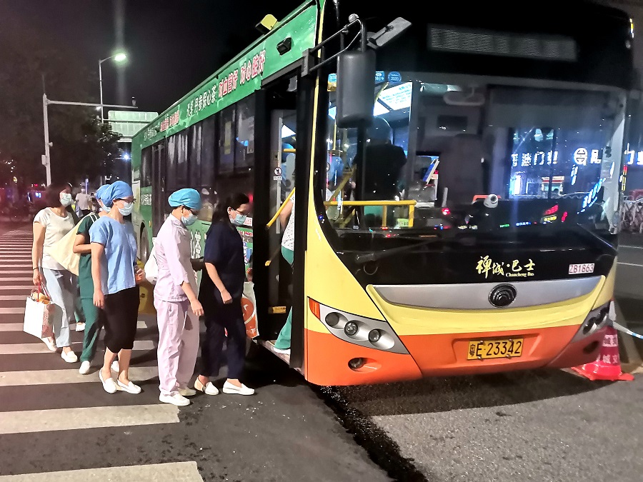 29日凌晨2點(diǎn)多,完成防控任務(wù)返家的兩名營(yíng)運(yùn)負(fù)責(zé)人途徑石灣街道辦,發(fā)現(xiàn)還有超過(guò)30名醫(yī)護(hù)人員仍在等待。詢問(wèn)得知,原來(lái)已是深夜,醫(yī)護(hù)人員離開(kāi)遇到困難。兩人馬上與公司溝通,派出一輛公交車前來(lái)接送。
