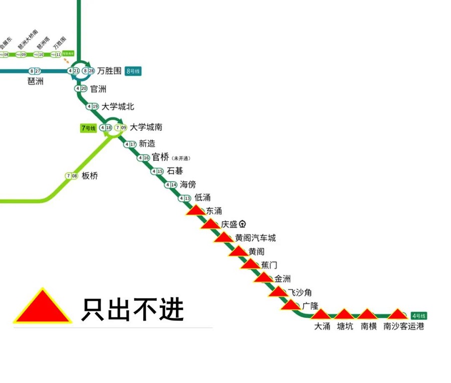 央廣網(wǎng)廣州6月6日消息(記者 張勝強)據(jù)“廣州地鐵”官方微博發(fā)布,6月7日起,一號線西塱站、坑口站、花地灣站、芳村站,廣佛線龍溪站、西塱站、沙涌站,五號線滘口站調(diào)整為停止對外運營服務(wù);廣佛線鶴洞站、菊樹站仍實行停止對外運營服務(wù);四號線“東涌站至南沙客運港站”各站所有出入口只出不進。