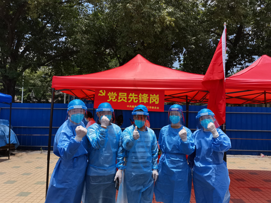 為按時按量完成檢測工作,在高溫、暴雨的環(huán)境下,支援人員堅守一線,在各核酸檢測現(xiàn)場維護秩序、辦理登記、分發(fā)條形碼、上門開展宣傳,協(xié)助街道社區(qū)完成全員核酸檢測。